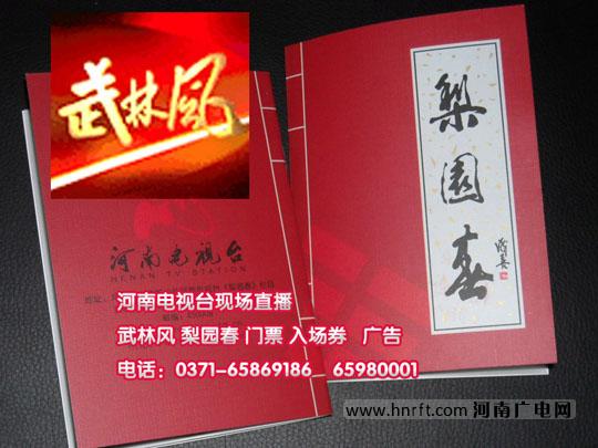 河南电视台武林风票 梨园春票 广告 演艺演出 售票热线:0371-65980001 / 65869186 QQ:401765423